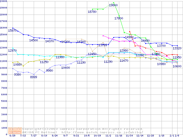 | [↓次グラフ]: | HDD 100~160GB未満(7200rpmクラス)の最安値推移 |