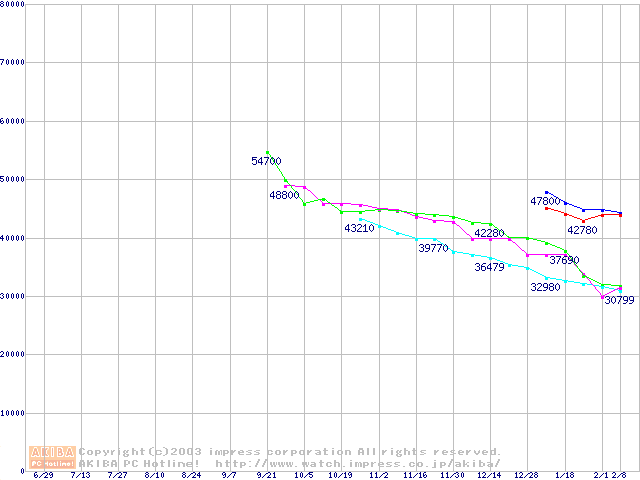 HDD 160~200GB未満(7200rpmクラス)の最安値推移