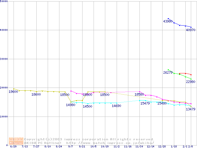 | [↓次グラフ]: | HDD 30GB~40GB未満(7200rpmクラス)の最安値推移 |