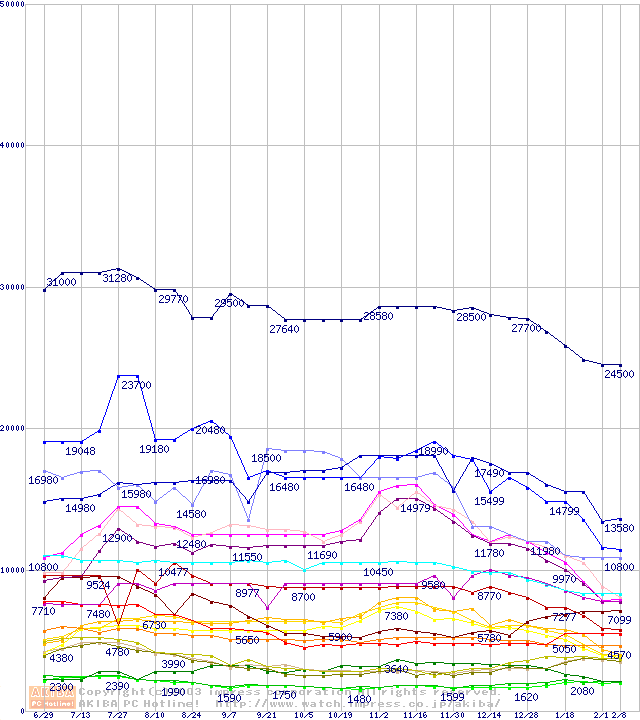 HDD 200GB以上(7200rpmクラス)の最安値推移