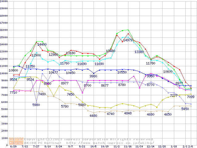 メモリ主要製品(最安値5千円~1万円未満)の最安値推移