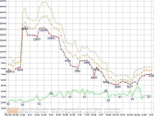 PC133 SDRAM DIMM CasLatency=2の最安値推移