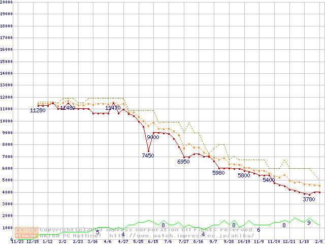 Athlon 1.1GHz(FSB200) バルクの価格推移