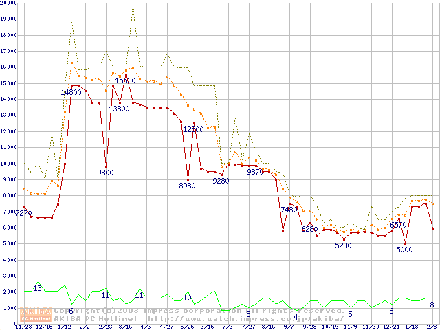 PC100 SDRAM DIMM CasLatency=2の最安値推移