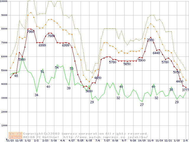 メモリ主要製品の最安値推移