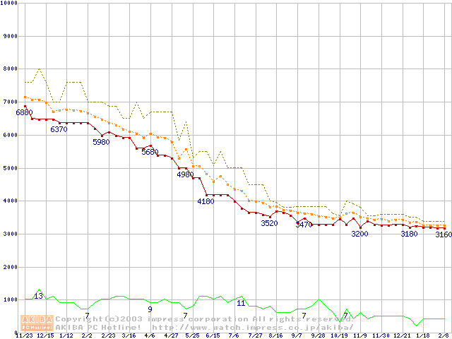 Socket A (PGA,FSB 200MHz,L2 64KB,Spitfire)の最安値推移
