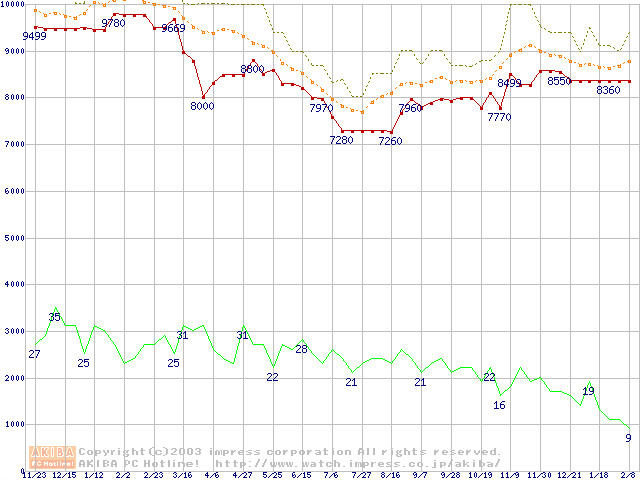 U6 (5400rpm,UltraATA/100 2MB 40GB/Platter)の最安値推移
