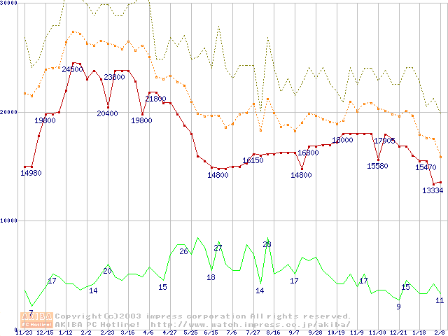 メモリ主要製品の最安値推移