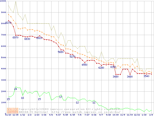 Socket A (PGA,FSB 200MHz,L2 64KB,Morgan)の最安値推移