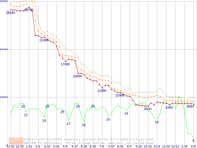 Athlon XP 1800+ (1.53GHz) リテールパッケージの価格推移