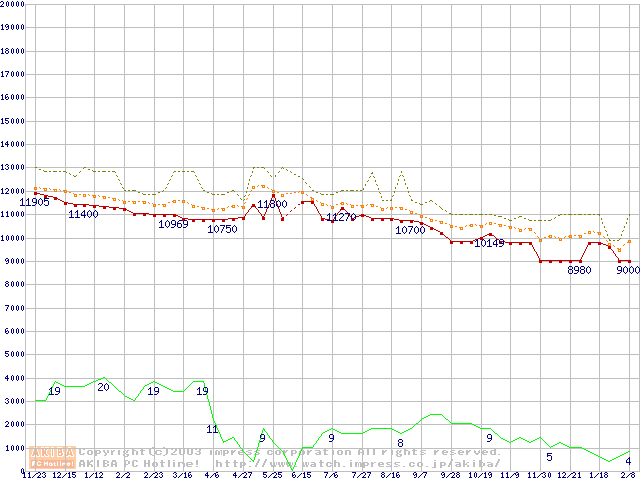 MKシリーズ (9.5mm,4200rpm)の最安値推移