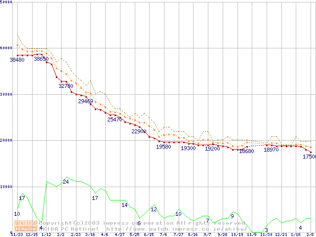 WD Caviar (7200rpm,UltraATA/100,2MB)の最安値推移