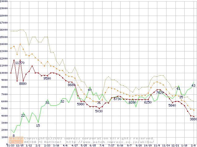 メモリ主要製品の最安値推移