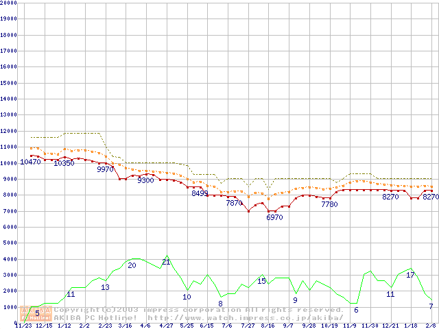 WD Protege (5400rpm,UltraATA/100)の最安値推移