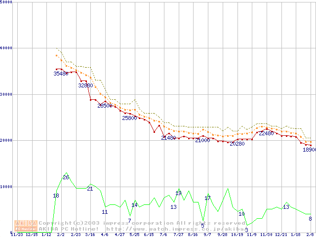 WD Caviar(Special Edition) (7200rpm,UltraATA/100,8MB)の最安値推移