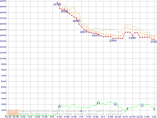 WD Caviar(Special Edition) (7200rpm,UltraATA/100,8MB)の最安値推移