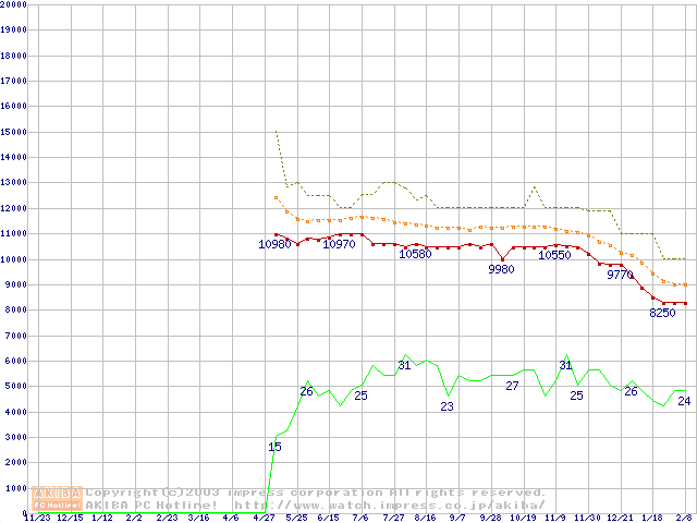 PC800-40 RIMM 256MBの価格推移