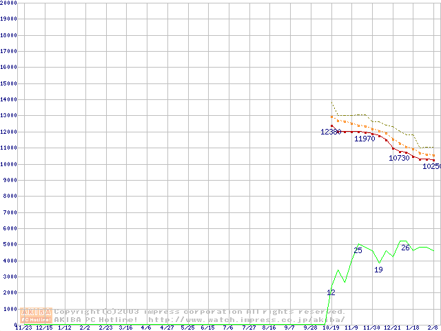 HDD主要製品(最安値1万円~1万5千円未満)の最安値推移