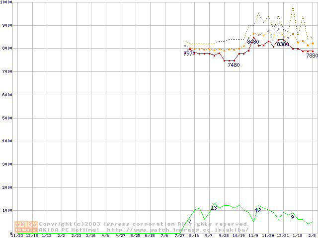 Jupitor (7200rpm,2MB,FDB,UltraATA/100)の最安値推移