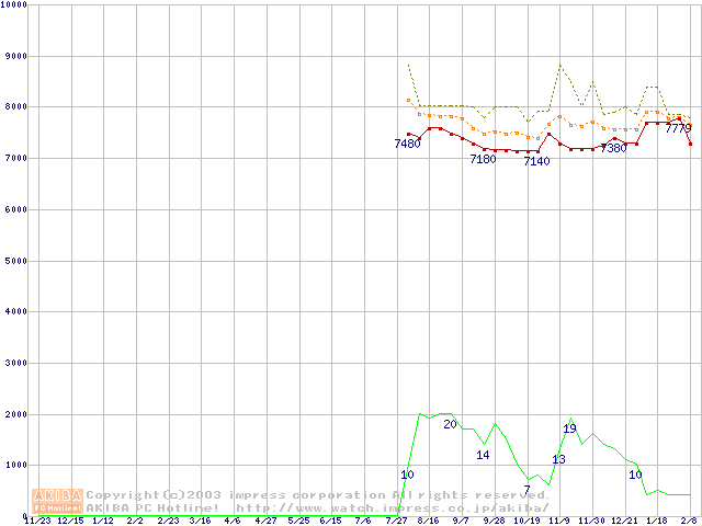 Fireball 3 (5400rpm,UltraATA/133,2MB,BB)の最安値推移