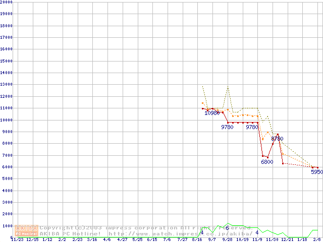 Socket A (OPGA,FSB 200MHz,L2 256KB)の最安値推移