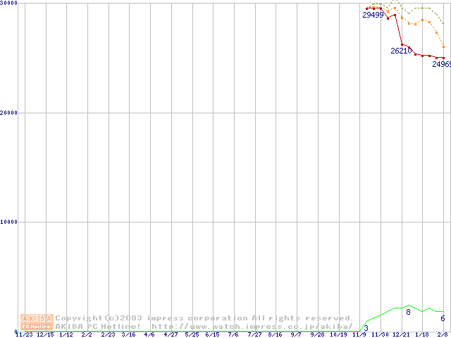 WD Caviar (7200rpm,UltraATA/100,2MB)の最安値推移