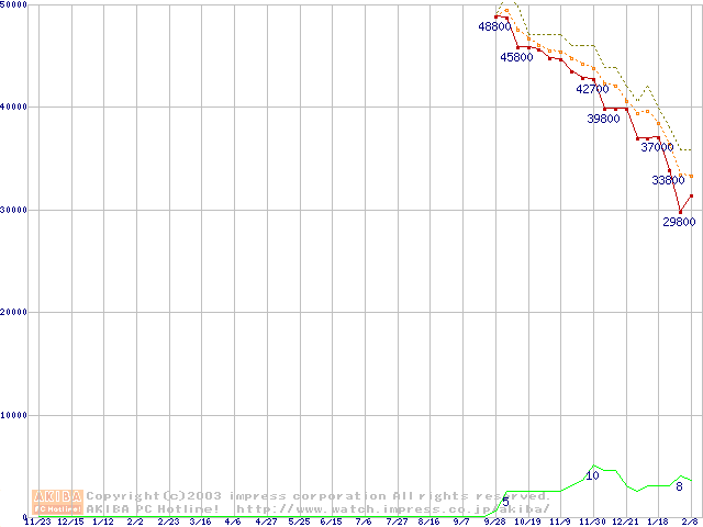 WD Caviar (7200rpm,UltraATA/100,2MB)の最安値推移