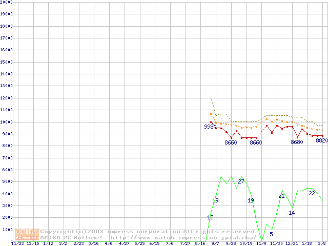 DiamondMax 16 (5400rpm,UltraATA/133,2MB,80GB/Platter,FDB)の最安値推移