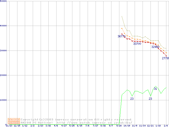 Deskstar 180GXP (7200rpm,8MB,UltraATA/100,FDB)の最安値推移