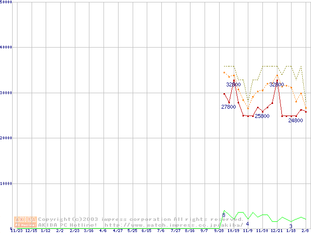 PC3500(DDR433) DDR SDRAM DIMMの最安値推移