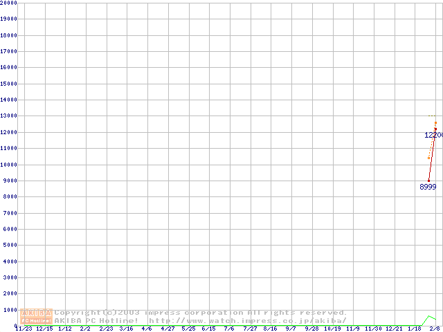 Socket A (OPGA,FSB 266MHz,L2 256KB,Thoroughbred)の最安値推移