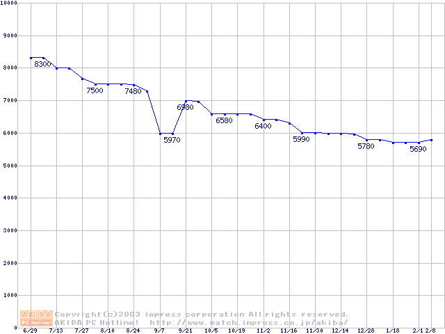 | [↓次グラフ]: | Socket A (PGA,FSB 200MHz,L2 256KB,Thunderbird)の最安値推移 |