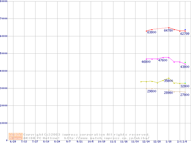 | [↓次グラフ]: | Socket 603 (micro-PGA,FSB 400MHz,L2 512KB,Prestonia)の最安値推移 |