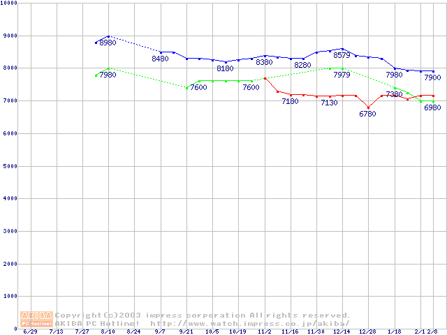 | Fireball 3 (5400rpm,UltraATA/133,2MB,FDB)の最安値推移 |