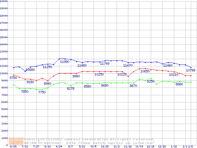 | [↓次グラフ]: | Barracuda 5400.1 (5400rpm,UltraATA/100,2MB,FDB)の最安値推移 |