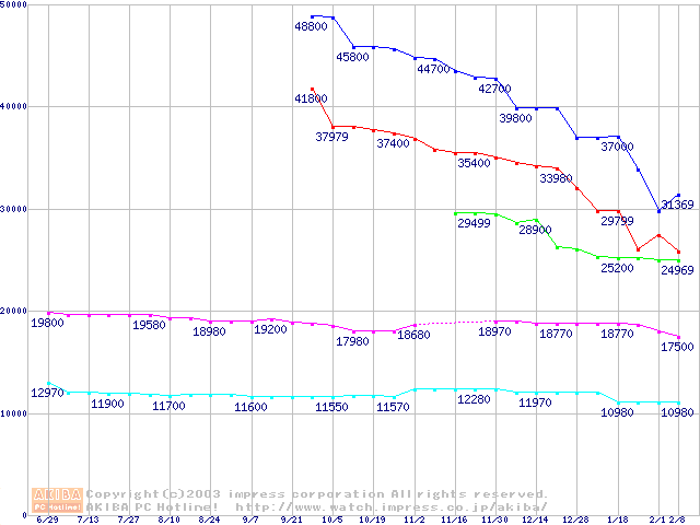 | [↓次グラフ]: | WD Caviar (5400rpm,UltraATA/100,2MB)の最安値推移 |