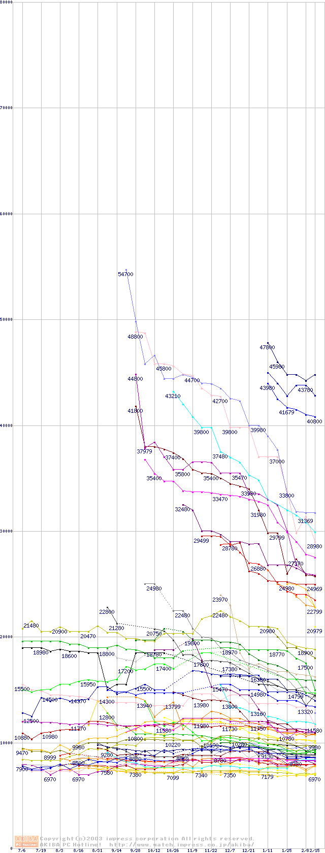 HDD 20GB~30GB未満(5400rpmクラス)の最安値推移