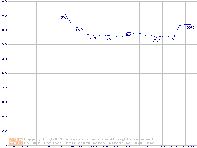 | [↓次グラフ]: | HDD 40GB~50GB未満(7200rpmクラス)の最安値推移 |