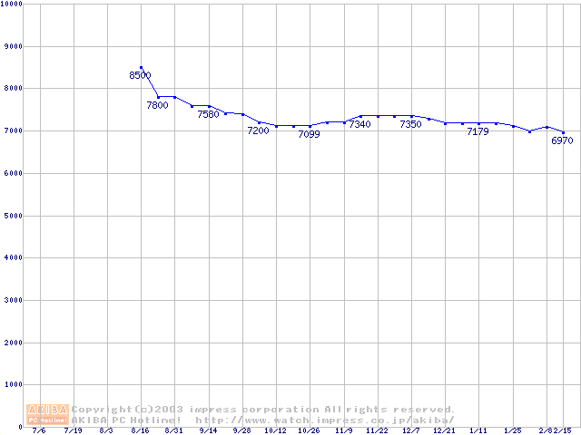 HDD 20GB~30GB未満(5400rpmクラス)の最安値推移