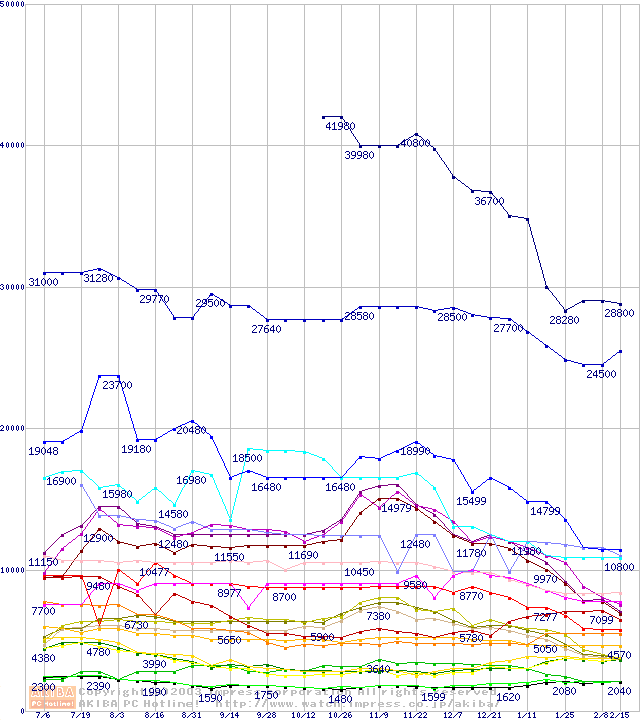メモリ主要製品の最安値推移