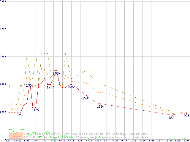 PC100 SDRAM DIMM CasLatency=2の最安値推移