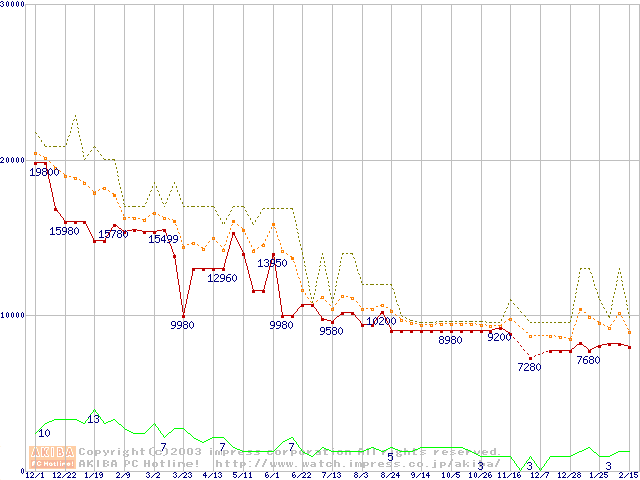 Socket A (PGA,FSB 200MHz,L2 256KB,Palomino)の最安値推移