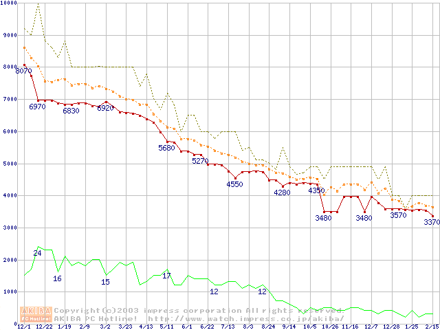 Socket A (PGA,FSB 200MHz,L2 64KB,Morgan)の最安値推移