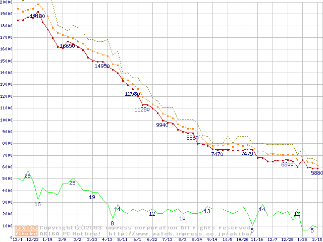 Socket A (OPGA,FSB 266MHz,L2 256KB,Palomino)の最安値推移