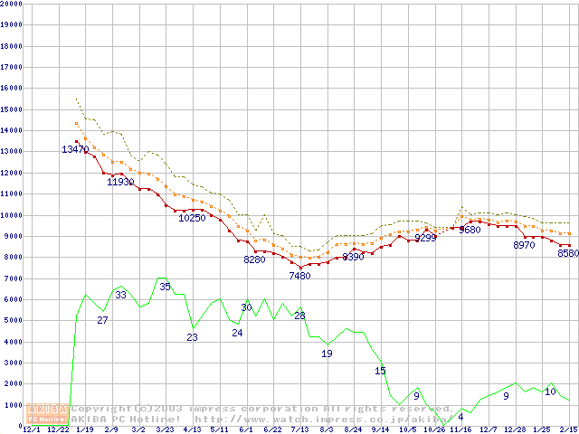 Deskstar 120GXP IC35L040AVVA07 (41.2GB)の価格推移