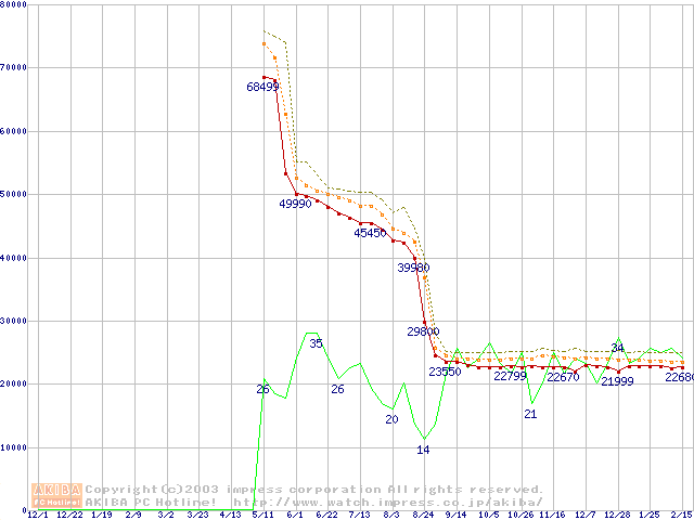 Pentium 4 2.4B GHz リテールパッケージの価格推移