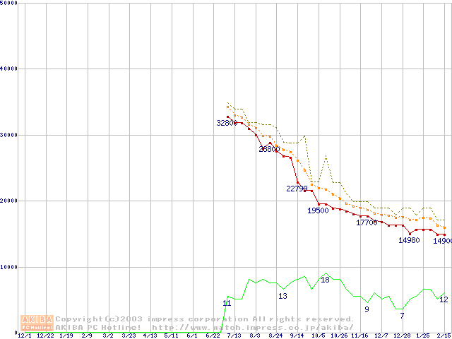 MKシリーズ (9.5mm,5400rpm,16MB,FDB,20GB/Platter)の最安値推移