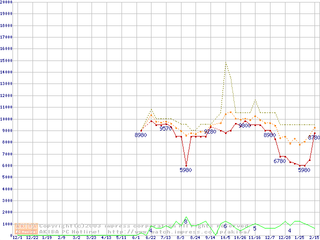 PC1066 DRDRAM RIMMの最安値推移