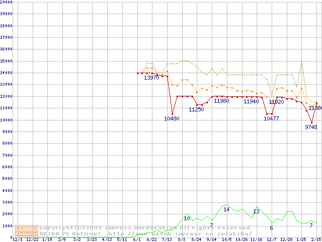 PC800-40 DRDRAM RIMM ECC対応の最安値推移