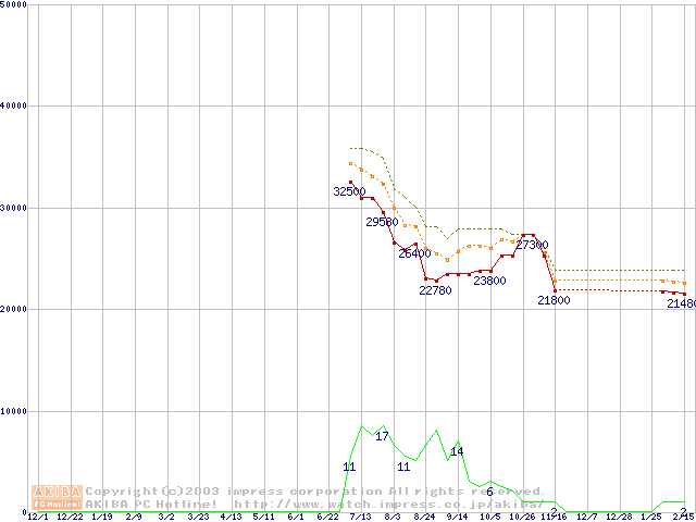 Athlon MP 2100+ (1.73GHz) リテールパッケージの価格推移